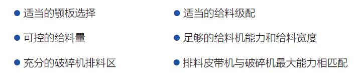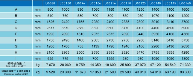 以上數(shù)據(jù)所表示的破碎機產(chǎn)量,是針對平均比重為 2.7t/m 3 ,給料能夠順利進入破碎腔、無架橋卡堵現(xiàn)象,給料剔除小于排礦口細料時取小值,含細料時取大值。產(chǎn)量可能隨給料方式和物料性質(zhì)諸如粒度組成、含水含泥量、松散密度和可碎性而變化。