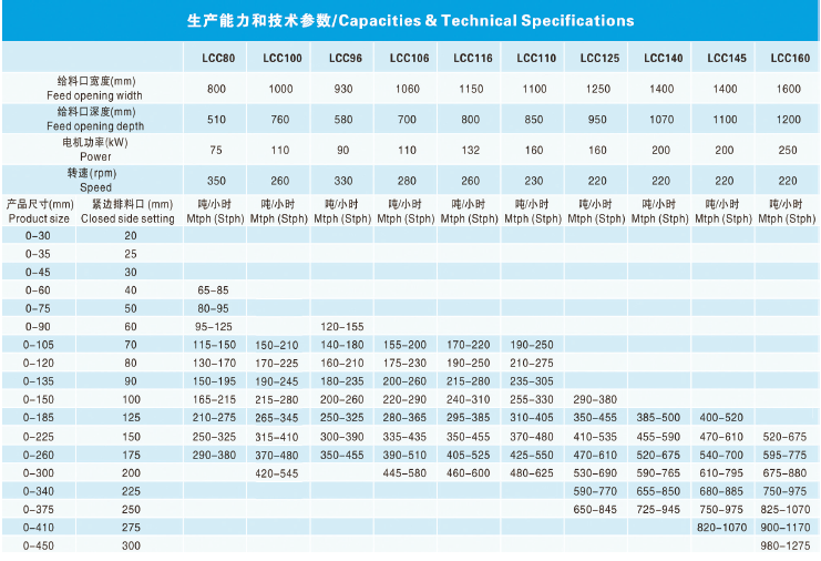 LCC 系列顎式破碎機都裝備有雙楔塊排礦口調(diào)整系統(tǒng),其堅固且調(diào)整快捷的優(yōu)勢在行業(yè)內(nèi)已經(jīng)得到證明,該系統(tǒng)在對于由于供電中斷導(dǎo)致系統(tǒng)帶負載停機而需要清腔時尤其有效;橡膠減震裝置和限位塊可以吸收震動峰值載荷,并允許破碎機垂直和縱向位移,從而有效地降低破碎機對基礎(chǔ)的沖擊;電機機座與破碎機機架一體安裝,減少了破碎機安裝空間和 V 形帶的長度。